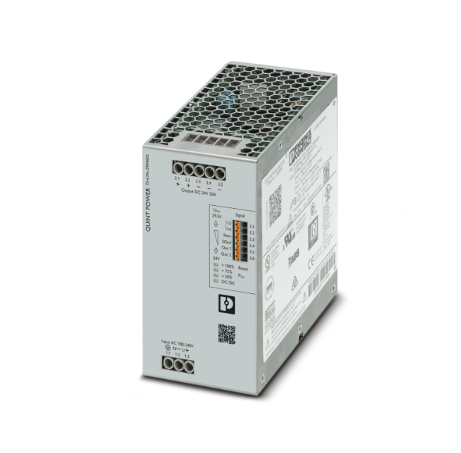Primary-switched QUINT POWER power supply with free choice of output characteristic curve, SFB (selective fuse breaking) technology, and NFC interface, input: 1-phase, output: 24 V DC/20 A